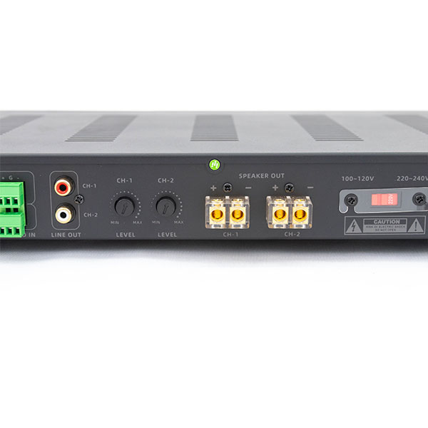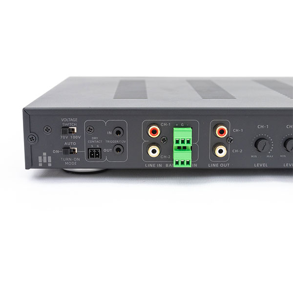 Salida de potencia: 300W por canal @ 70V/100V
